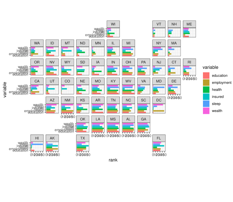 Flexibly visualize data for different geographical regions by providing a ggplot2 faceting function