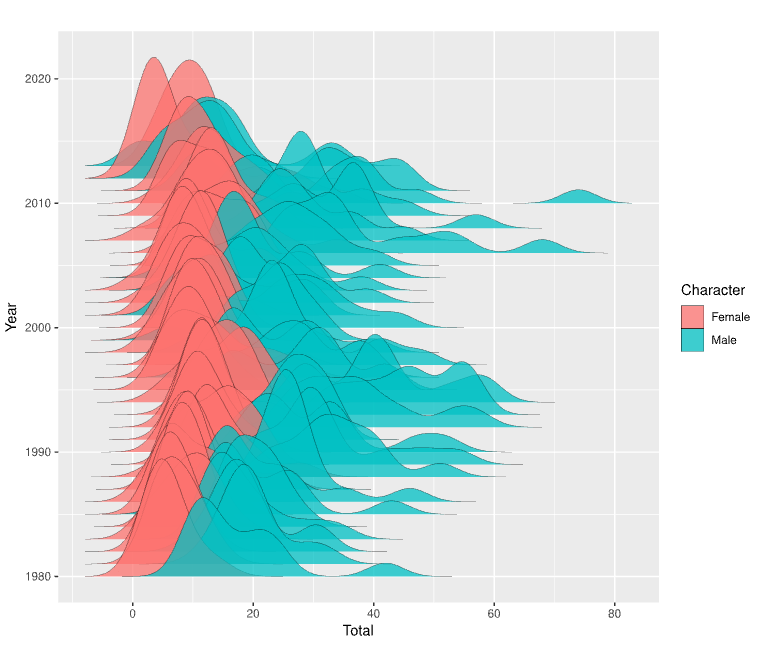 Comparison of two distributions along the third axis (e.g. time, regions)