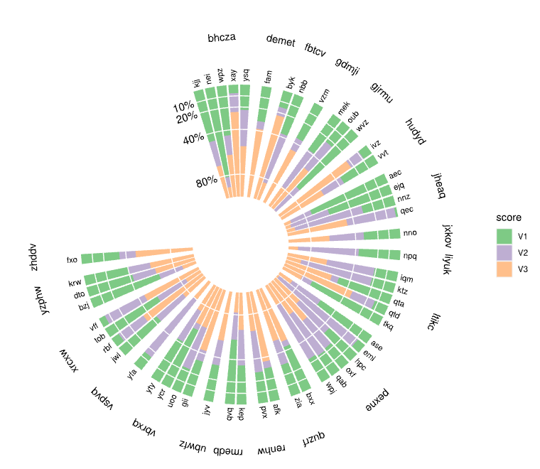 Polar histograms can be very useful for plotting stacked bar graph with multiple entries.