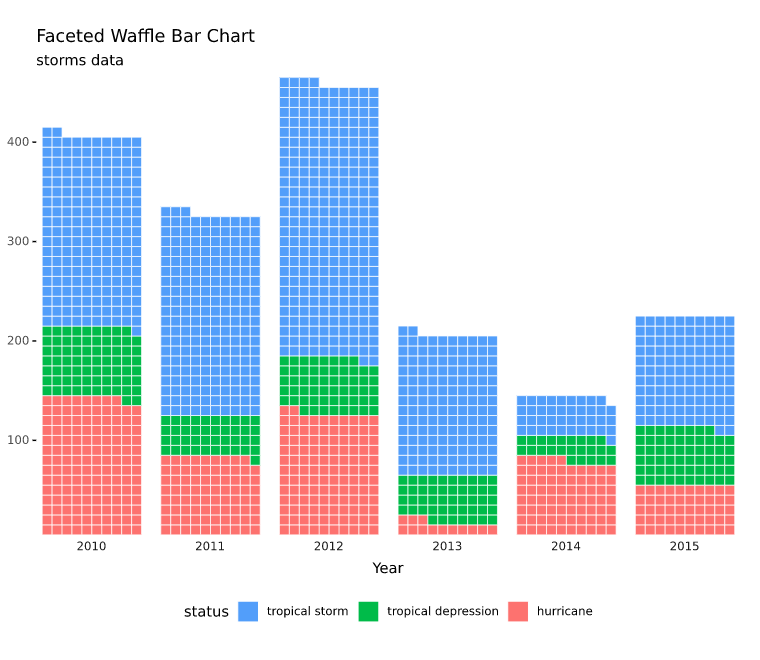Square pie charts (waffle charts) can be used to communicate parts of a whole for categorical quantities